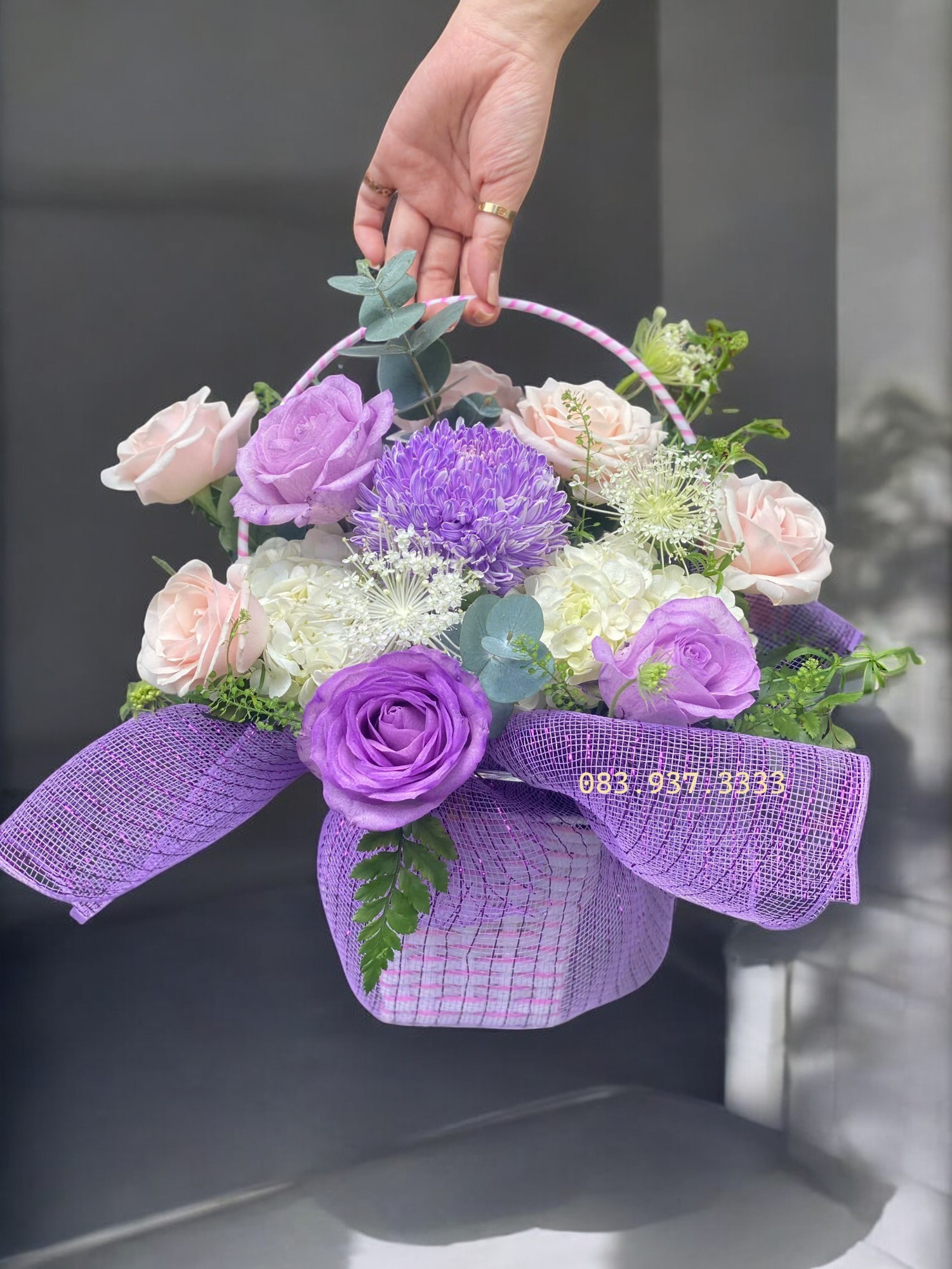 Bó hoa baby trắng & hồng pastel: Dịu dàng, ý nhị – phù hợp tặng mẹ chồng, mẹ nuôi. - Giỏ hoa hồng trắng & cẩm tú cầu tím: Nhẹ nhàng, trầm lắng – thích hợp tưởng niệm người đã khuất trong dịp Vu Lan.