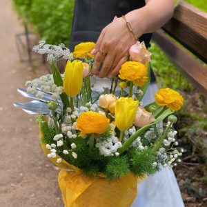 Sản phẩm giỏ hoa có các thành phần bao gồm :