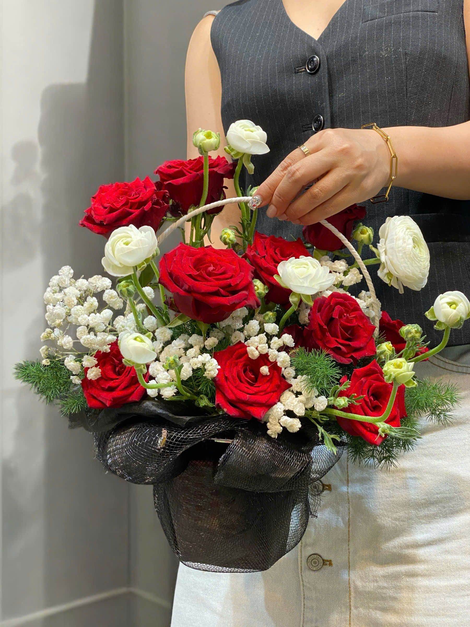 Sản phẩm giỏ hoa có các thành phần bao gồm :